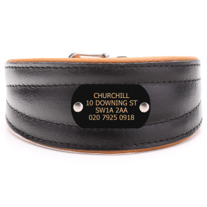 Hemos tomado nuestros collares de perro acolchados de cuero de alta calidad y hemos agregado personalización con una placa de metal impresa. Su perro apreciará el collar acolchado suave, mientras que usted se preocupará un poco menos sabiendo que la etiqueta no se caerá mientras persigue a los zorros por el parque. Especialmente diseñado para la comodidad de su perro de caza. El cierre estrecho se ajusta fácilmente debajo de la barbilla y el cuello se ensancha en la parte posterior del cuello para mantenerse sin causar rozaduras. Este diseño es útil para evitar que su perro se salga del collar en caso de que un conejo se atreva a cruzarse en su camino. El suave forro acolchado hipoalergénico significa que no tendrá líneas de cuello talladas en su piel y el frente de cuero real es duradero y elegante. Ofrecemos una multitud de combinaciones de colores de forro acolchado y cuero frontal para garantizar que su perro se sienta cómodo y elegante. El anillo en D soldado es muy fuerte y se adapta a todas las correas para perros estándar. La hebilla cromada duradera sujeta la correa firmemente y asegurará a cualquier perro durante toda su vida.