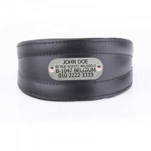 Hemos tomado nuestros collares de perro acolchados de cuero de alta calidad y hemos agregado personalización con una placa de metal impresa. Su perro apreciará el collar acolchado suave, mientras que usted se preocupará un poco menos sabiendo que la etiqueta no se caerá mientras persigue a los zorros por el parque. Especialmente diseñado para la comodidad de su perro de caza. El cierre estrecho se ajusta fácilmente debajo de la barbilla y el cuello se ensancha en la parte posterior del cuello para mantenerse sin causar rozaduras. Este diseño es útil para evitar que su perro se salga del collar en caso de que un conejo se atreva a cruzarse en su camino. El suave forro acolchado hipoalergénico significa que no tendrá líneas de cuello talladas en su piel y el frente de cuero real es duradero y elegante. Ofrecemos una multitud de combinaciones de colores de forro acolchado y cuero frontal para garantizar que su perro se sienta cómodo y elegante. El anillo en D soldado es muy fuerte y se adapta a todas las correas para perros estándar. La hebilla cromada duradera sujeta la correa firmemente y asegurará a cualquier perro durante toda su vida.