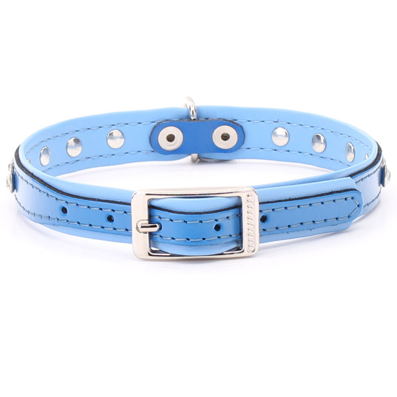 Collar Para Perro De Piel Azul Bebé Cristalizada