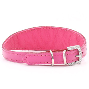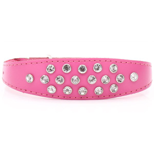 Este lujoso collar está decorado con cristales Swarovski y tiene una hebilla que también está adornada con cristales brillantes. Hecho de cuero genuino con un respaldo de cuero suave de grano completo, es liviano y súper cómodo para su perro. El cierre estrecho se ajusta fácilmente debajo de la barbilla y el cuello se ensancha ligeramente en la parte posterior del cuello para sentarse sin causar rozaduras.