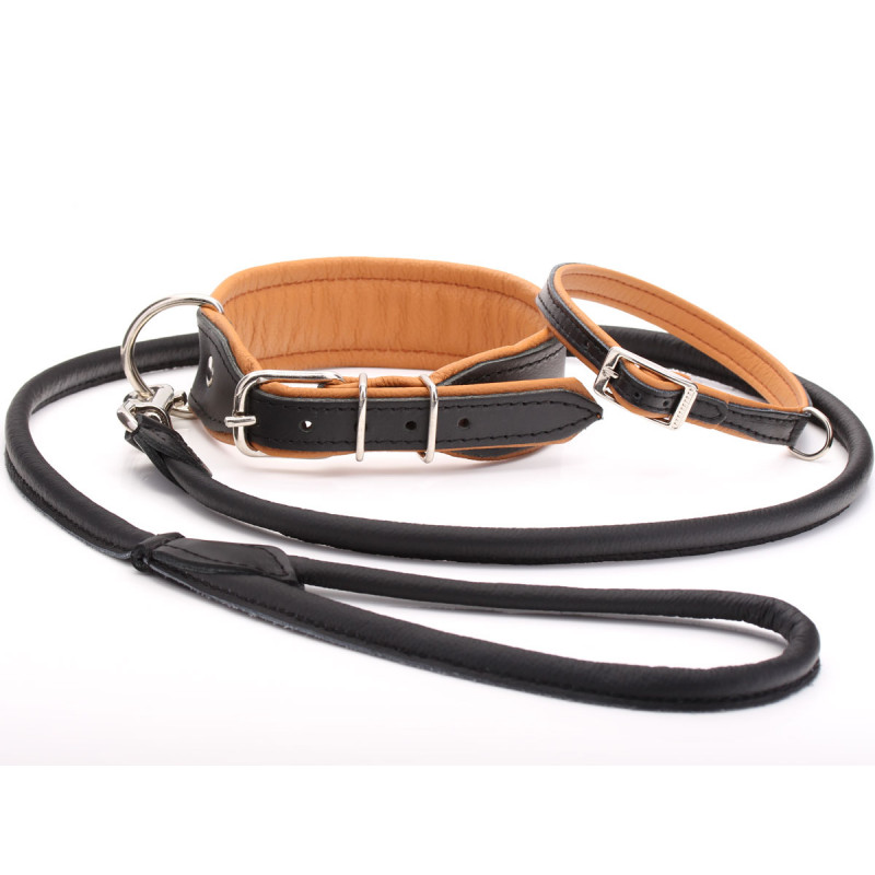 Conjunto De Collar Y Correa De Perro De Cuero Negro Y Marrón Hecho A Mano