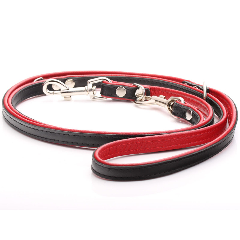 Correa De Adiestramiento Para Perros Ajustable De Cuero Negro Y Rojo