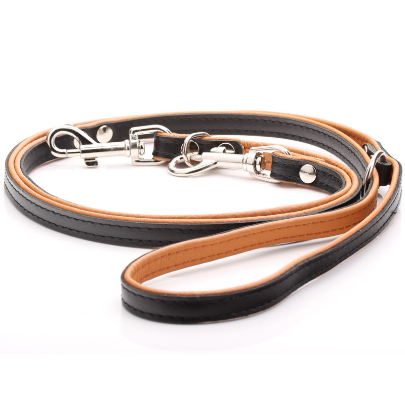 Correa De Perro Ajustable De Cuero Negro Y Marrón