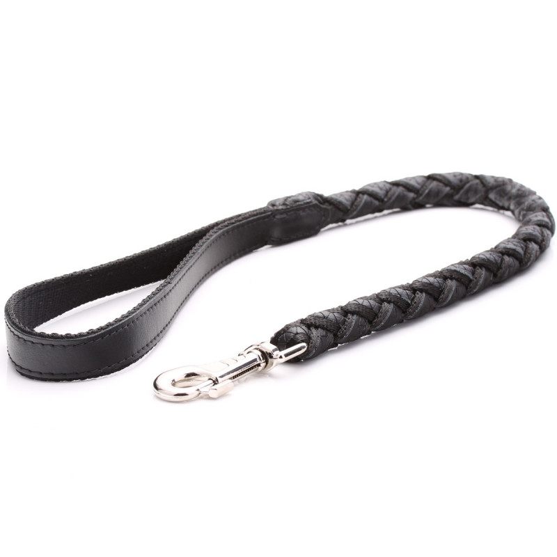 Correa De Perro Trenzada De Cuero Negro