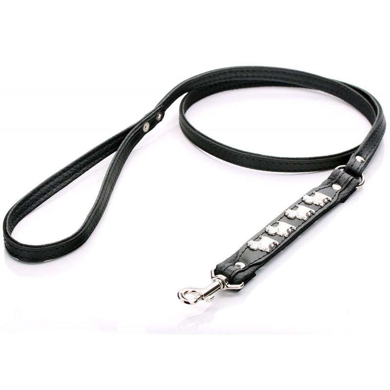 Correa para perro de cuero negro con suave acolchado negro decorado con 4 perros Westie de metal. Asegúrese de ver nuestro collar a juego.
