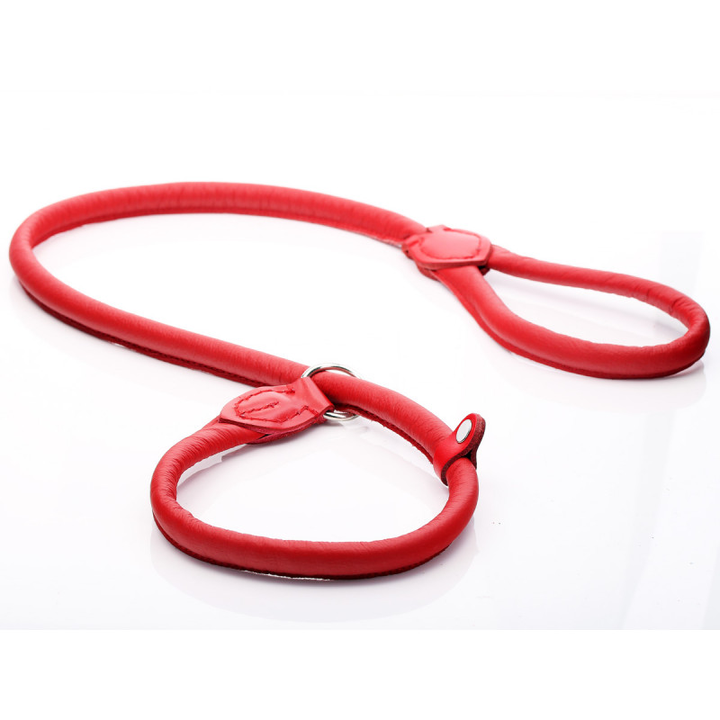 Nuestras correas antideslizantes son maravillosas para perros que tienen problemas para tirar o necesitan un poco de entrenamiento para caminar correctamente con una correa. Están fabricados en piel muy suave e incluyen un bloqueador de seguridad ajustable. El diseño redondeado también es bueno para cachorros con pelo largo o desgreñado porque evita que el pelaje se enrede. Cuando entrene a su perro, le recomendamos que tire de la correa hacia los lados en lugar de hacia atrás. Esto hace que su perro pierda el equilibrio y le recuerde quién tiene el control. Ajuste el bloqueador de seguridad para evitar que el lazo se apriete demasiado.