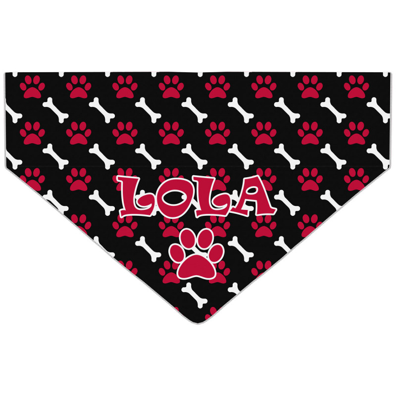 Pañuelo Negro Personalizado Para Perro Con Patrón De Pata Y Hueso