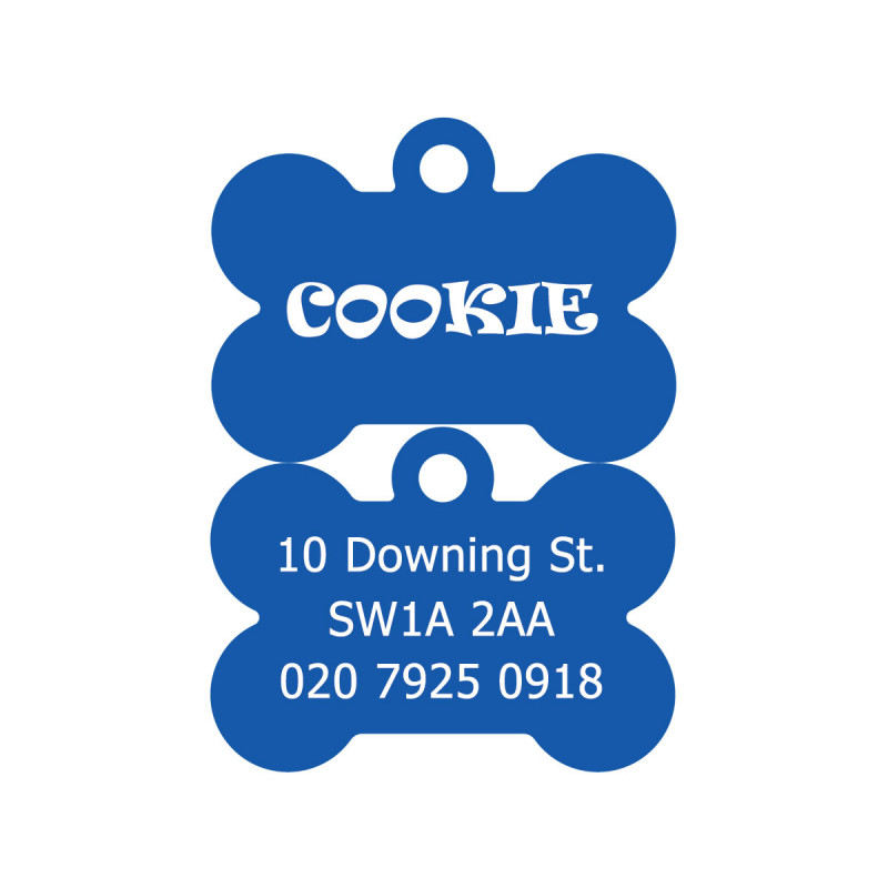 Nuestras placas de identificación son extremadamente populares porque son coloridas, únicas y se pueden personalizar por completo. La impresión sobre aluminio nos permite tener un acabado duradero y muy visible. ¡Qué mejor manera de mantener a su perro seguro y elegante que una placa de identificación personalizada y colorida! Puede personalizar cada lado de la etiqueta de forma independiente. La mayoría de los clientes optan por imprimir el frente de la etiqueta con un solo nombre y personalizar la parte posterior de la etiqueta con todos los datos de contacto importantes. Incluimos un llavero de gran peso que puede usar para sujetarlo a su collar existente. Es lo suficientemente fuerte para garantizar que la etiqueta nunca se caiga.