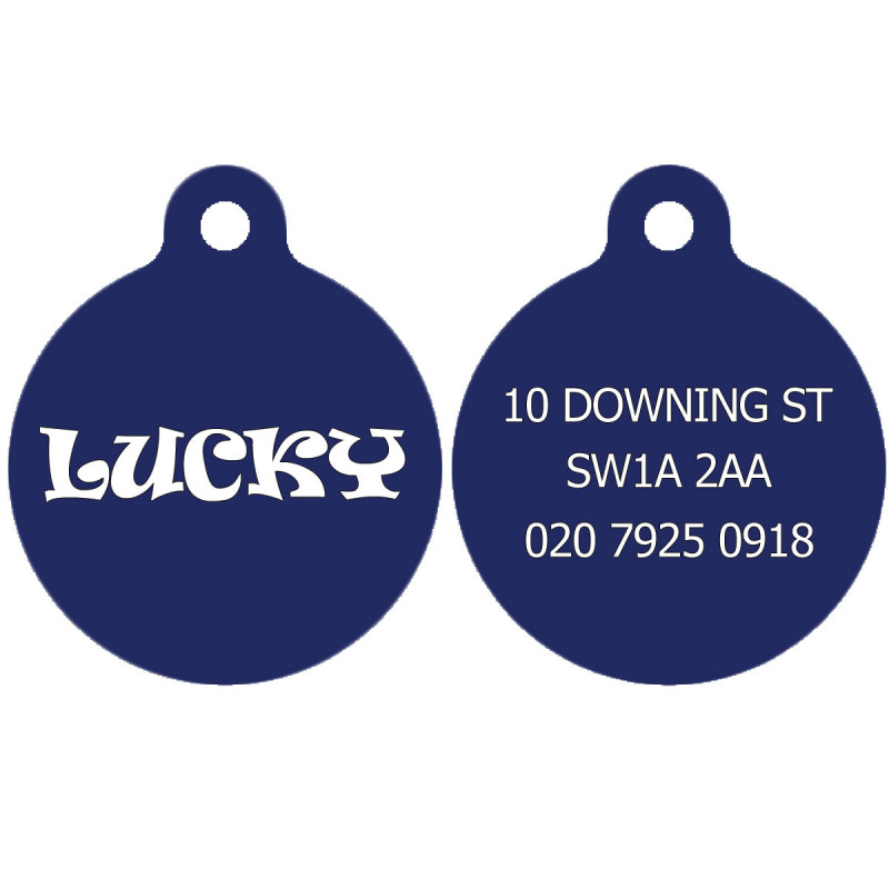Nuestras placas de identificación son extremadamente populares porque son coloridas, únicas y se pueden personalizar por completo. La impresión sobre aluminio nos permite tener un acabado duradero y muy visible. ¡Qué mejor manera de mantener a su perro seguro y elegante que una placa de identificación personalizada y colorida! Puede personalizar cada lado de la etiqueta de forma independiente. La mayoría de los clientes optan por imprimir el frente de la etiqueta con un solo nombre y personalizar la parte posterior de la etiqueta con todos los datos de contacto importantes. Incluimos un llavero de gran peso que puede usar para sujetarlo a su collar existente. Es lo suficientemente fuerte para garantizar que la etiqueta nunca se caiga.