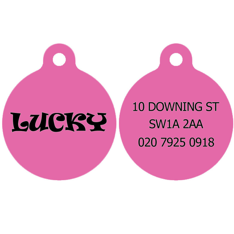 Nuestras placas de identificación son extremadamente populares porque son coloridas, únicas y se pueden personalizar por completo. La impresión sobre aluminio nos permite tener un acabado duradero y muy visible. ¡Qué mejor manera de mantener a su perro seguro y elegante que una placa de identificación personalizada y colorida! Puede personalizar cada lado de la etiqueta de forma independiente. La mayoría de los clientes optan por imprimir el frente de la etiqueta con un solo nombre y personalizar la parte posterior de la etiqueta con todos los datos de contacto importantes. Incluimos un llavero de gran peso que puede usar para sujetarlo a su collar existente. Es lo suficientemente fuerte para garantizar que la etiqueta nunca se caiga.