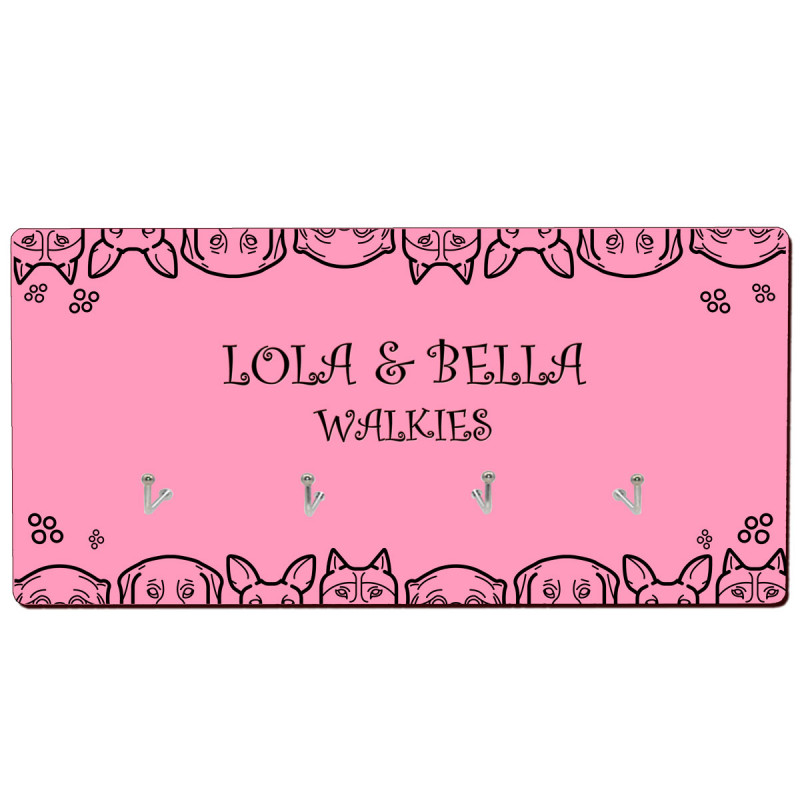 Cree un espacio en la pared para la actividad favorita de su mejor amigo (o manada) ... ¡Caminatas! Puede personalizar este soporte para correa de perro con cualquier texto que desee: el nombre de su perro, su apellido o incluso un dicho favorito. Hay un total de 4 ganchos de metal que también puede usar para colgar collares o llaves. La unidad mide 25,5 x 13 cm o 10 x 5,1 pulgadas