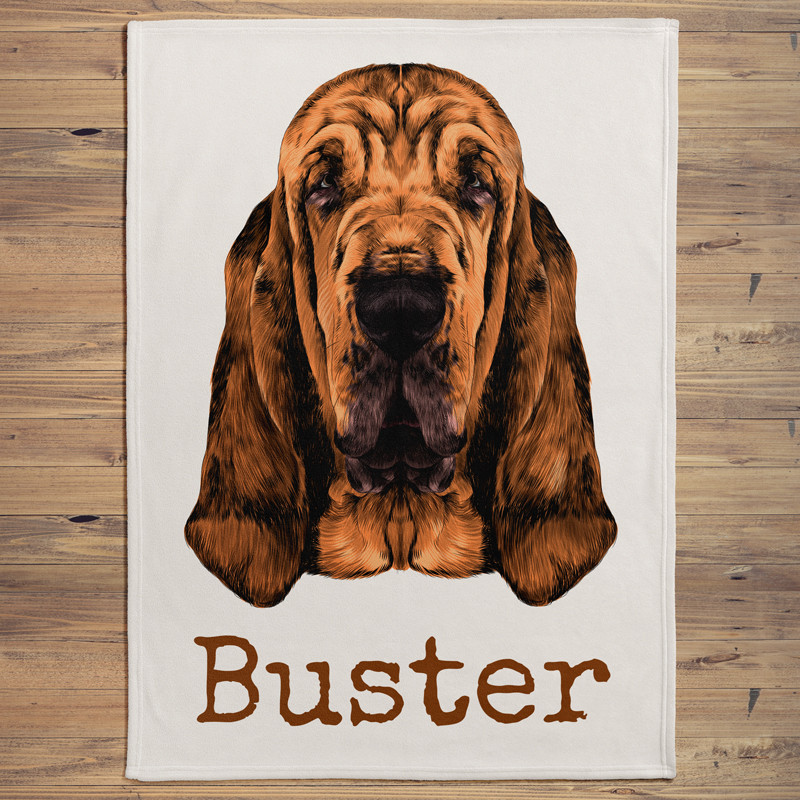 Couverture en polaire beige clair super douce personnalisée avec le nom de votre chien dans la couleur d'impression de votre choix. Il mesure 140cm x 95cm.