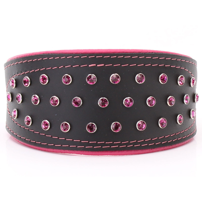 Ce collier de chien de chasse luxueux est décoré de cristaux Swarovski et est conçu pour le confort. La fermeture étroite s'adapte facilement sous le menton et le collier s'élargit à l'arrière du cou pour s'asseoir sans provoquer de frottement. Le rembourrage arrière en cuir souple signifie que vous n'aurez pas de lignes qui font mal dans leur fourrure et le devant en cuir véritable est à la fois durable et élégant.