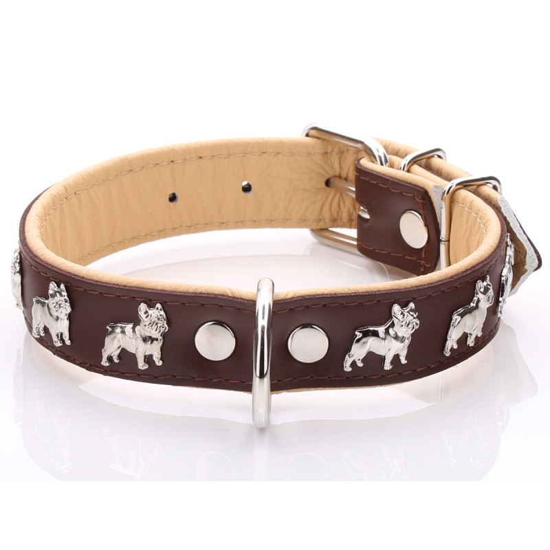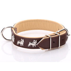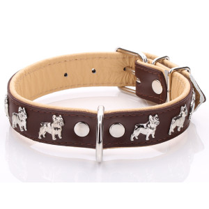 Non seulement les bouledogues français sont d'excellents compagnons, mais ils sont aussi de fabuleux chiens de spectacle. Ce collier est parfait pour votre petite superstar car il est conçu pour être élégant et ultra confortable. Grâce au rembourrage en cuir souple, votre meilleur ami n'aura pas de frottements ni de traces de collier. Nous proposons également des laisses assorties et un large assortiment de plaques d'identification personnalisées et colorées.