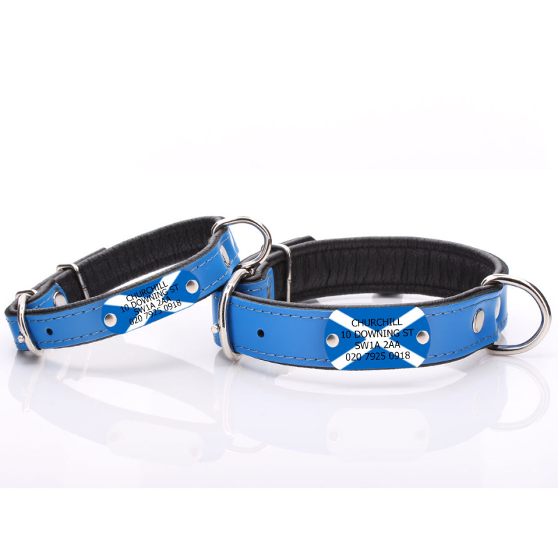 Collier Pour Chien En Cuir Véritable Avec Plaque Signalétique Drapeau Sautoir Écossais