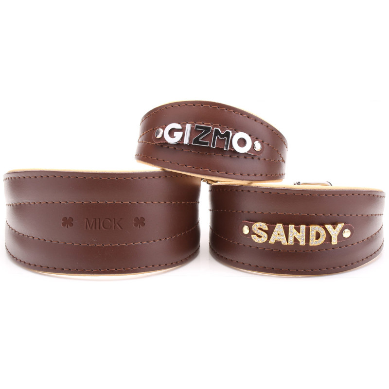 Collier Pour Chien Lurcher, Lurcher Et Whippet En Cuir Matelassé Marron Et Beige