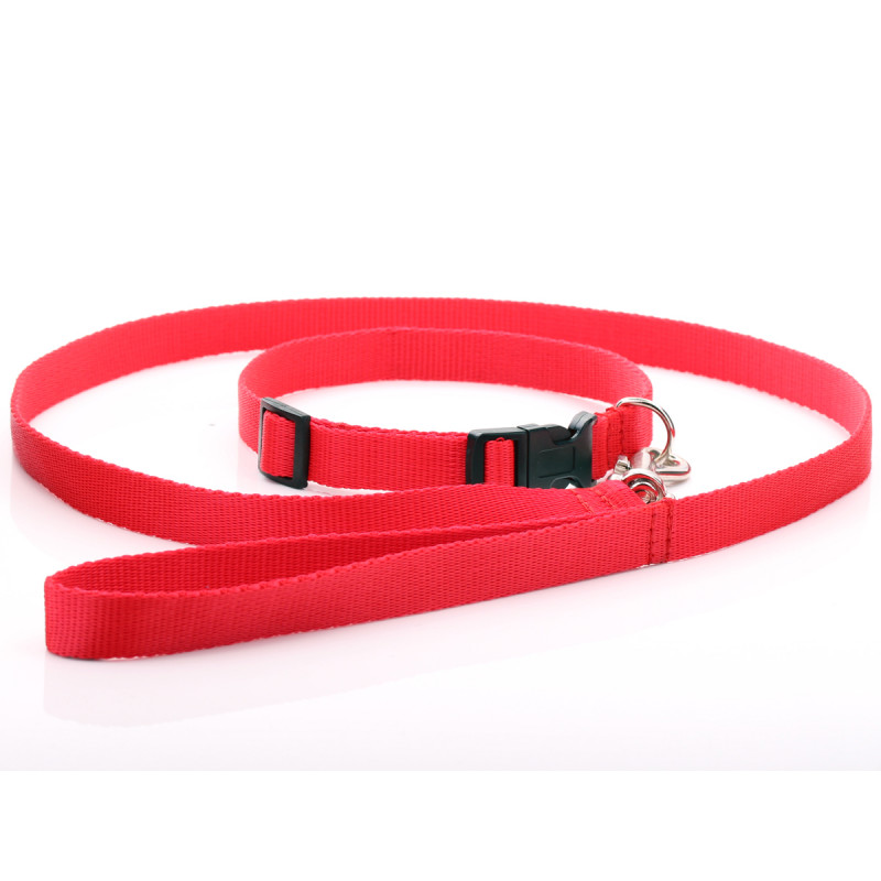 Ensemble Collier Et Laisse Pour Chien En Nylon Rouge