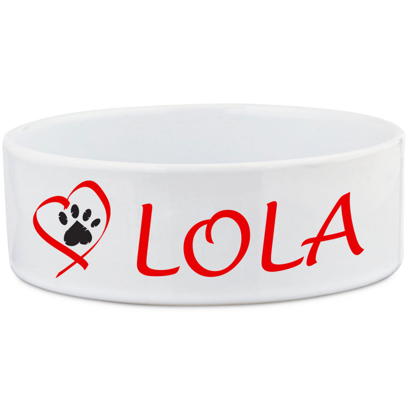 Cette gamelle pour chien ne vous décevra pas car elle est fabriquée en céramique solide et est proposée avec plus de motifs imprimés que ce que nous pouvons énumérer dans un paragraphe de deux pages. La céramique est finie dans une glaçure chatoyante qui lui donne un aspect et une sensation de luxe. Nous proposons cette gamelle en deux tailles et elle convient aussi bien à l'eau qu'à la nourriture. La petite/moyenne pèse 500 g et la grande fait pencher la balance à 1 kg. La personnalisation est imprimée dans la céramique et est permanente. Ce n'est PAS un autocollant qui se décolle. Bien qu'elle passe au lave-vaisselle, nous recommandons de le laver à la main avec de l'eau chaude savonneuse pour garantir que la personnalisation reste nette et belle. La gamelle est également répertoriée comme pouvant être utilisé au micro-ondes. Nous pouvons imprimer n'importe quel nom sur la gamelle personnalisée du chien, même s'il comporte des caractères non anglais. Nous proposons un délicieux assortiment de couleurs d'impression que vous trouverez sous l'option de personnalisation.