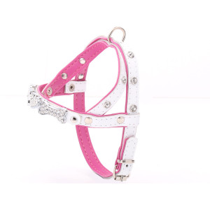 Harnais Pour Chien En Cuir Blanc Et Rose Cristallisé