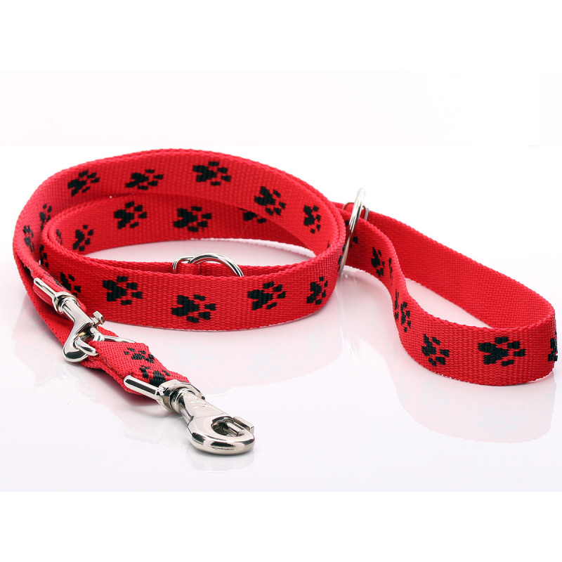 Cette laisse pour chien à empreinte de pattes est réglable de plusieurs longueurs allant de 120 cm à 220 cm. Il est fait de nylon durable, ce qui le rend super solide. Le fermoir est à ressort, ce qui permet de l'enfiler facilement sur le collier du chien. Chaque largeur a un fermoir de taille différente, ce qui permet de limiter le poids total sur les petites tailles. Les cordons réglables sont adaptés à la fois à l’entraînement et à l'utilisation quotidienne. Également connu sous le nom de laisse pour le dressage des chiens de la police, elle a au moins 6 utilisations différentes, dont : 1) Une courte laisse pour l'entraînement ou l'utilisation normale, 2) Une laisse moyenne pour l'entraînement, 3) Une longue laisse pour l'entraînement, 4) Promener 2 chiens à la fois ! 5) Drapés sur l'épaule ou autour de la taille pour un contrôle mains libres 6) Attache temporaire.