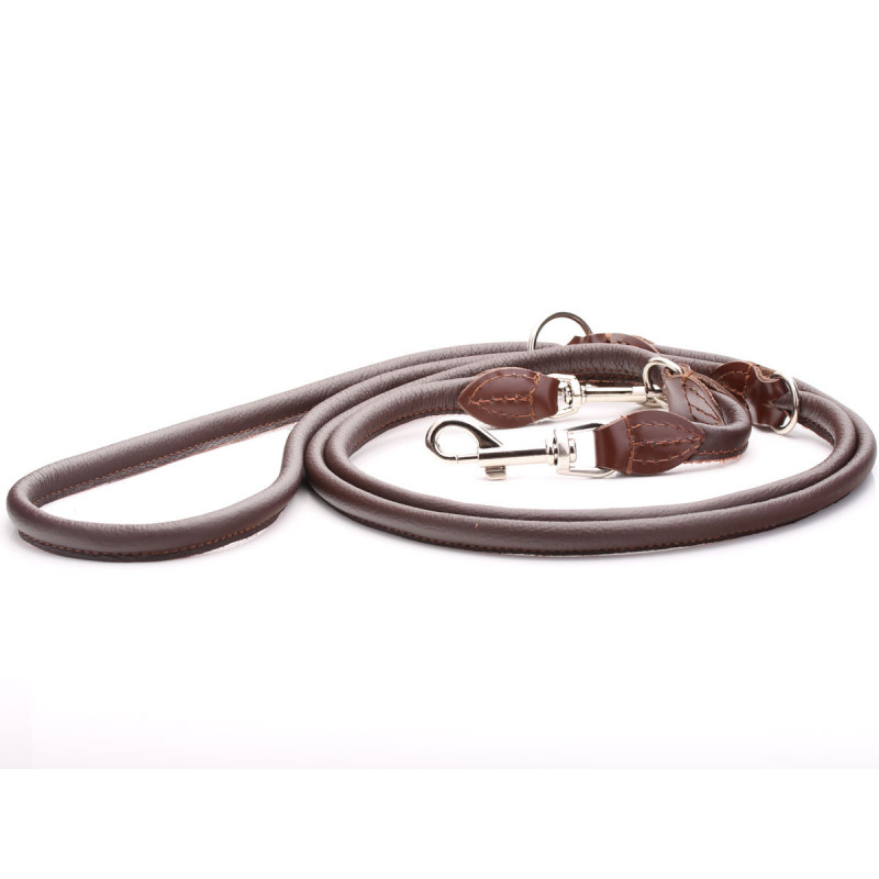 Notre laisse pour chien la plus polyvalente qui ne déçoit pas sur le plan du confort. Le design rond et le cuir plein et souple font de cette laisse un plaisir à avoir en main. Un noyau en nylon est ajouté à la laisse pour aider à maintenir la forme ronde et ajouter de la durabilité. En tout, nous avons en stock 8 variantes de couleurs pour garantir que nous ayons la couleur préférée de votre chien. Proposés en trois largeurs, nous avons une taille pour toutes les races. La grande est adaptée aux chiens forts, tandis que la petite est assez légère pour les petites races. Veillez à ne pas utiliser une petite laisse avec un gros chien ! Trois anneaux métalliques sont placés sur le plomb, ce qui vous permet de régler la longueur à : Courte - 120 cm ou 47 pouces. Moyenne - 158 cm ou 62 pouces. Longue - 200 cm ou 79 pouces. Les cordons réglables sont adaptés à la fois à l’entraînement et à l'utilisation quotidienne. Également connu sous le nom de laisse pour le dressage des chiens de la police, elle a au moins 6 utilisations différentes, dont : 1) Une courte laisse pour l'entraînement ou l'utilisation normale, 2) Une laisse moyenne pour l'entraînement, 3) Une longue laisse pour l'entraînement, 4) Promener 2 chiens à la fois ! 5) Drapés sur l'épaule ou autour de la taille pour un contrôle mains libres 6) Attache temporaire.