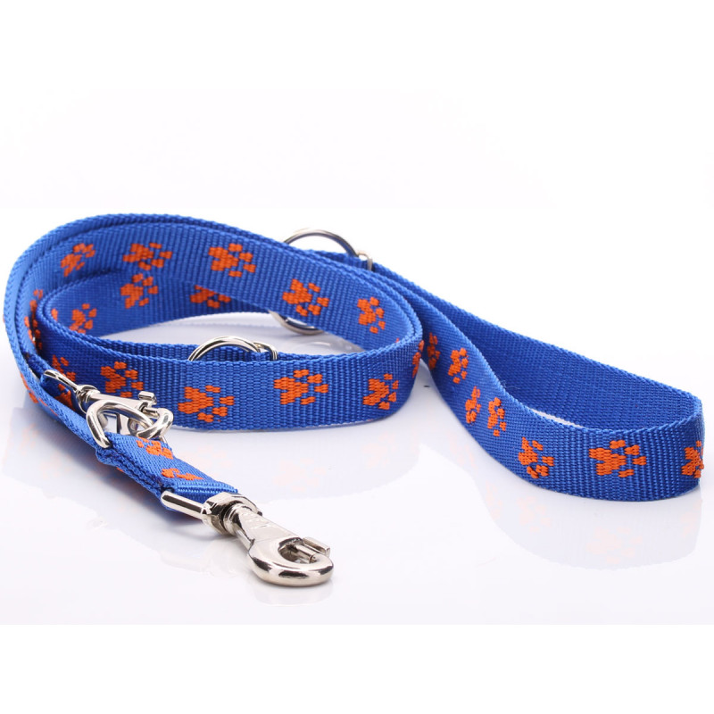 Cette laisse pour chien à empreinte de pattes est réglable de plusieurs longueurs allant de 120 cm à 220 cm. Il est fait de nylon durable, ce qui le rend super solide. Le fermoir est à ressort, ce qui permet de l'enfiler facilement sur le collier du chien. Chaque largeur a un fermoir de taille différente, ce qui permet de limiter le poids total sur les petites tailles. Les cordons réglables sont adaptés à la fois à l’entraînement et à l'utilisation quotidienne. Également connu sous le nom de laisse pour le dressage des chiens de la police, elle a au moins 6 utilisations différentes, dont : 1) Une courte laisse pour l'entraînement ou l'utilisation normale, 2) Une laisse moyenne pour l'entraînement, 3) Une longue laisse pour l'entraînement, 4) Promener 2 chiens à la fois ! 5) Drapés sur l'épaule ou autour de la taille pour un contrôle mains libres 6) Attache temporaire.