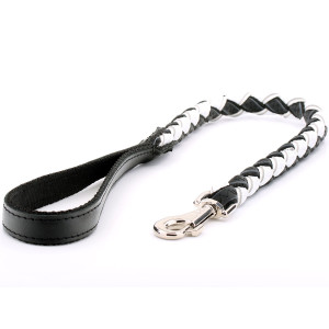 Cette laisse courte et tressée est idéale pour les grands chiens (ou même les chiens de taille moyenne qui doivent être tenus à proximité). Le cuir est renforcé par des sangles pour assurer la solidité et la durabilité, tandis que le beau design tressé ne manquera pas de faire tourner les têtes. Une longueur de 84 cm est idéale pour garder votre chien près de vous lorsque vous vous promenez près de la circulation ou s’il y a d'autres chiens. Le fermoir est à ressort, ce qui permet de l'enfiler facilement sur le collier du chien. Il est très robuste et devrait résister à toutes les contraintes qu'on lui impose. Un gaufrage optionnel est disponible sur la poignée. Vous pouvez ajouter un nom pour créer un cadeau original ou ajouter un numéro de téléphone si vous avez tendance à perdre des laisses.
