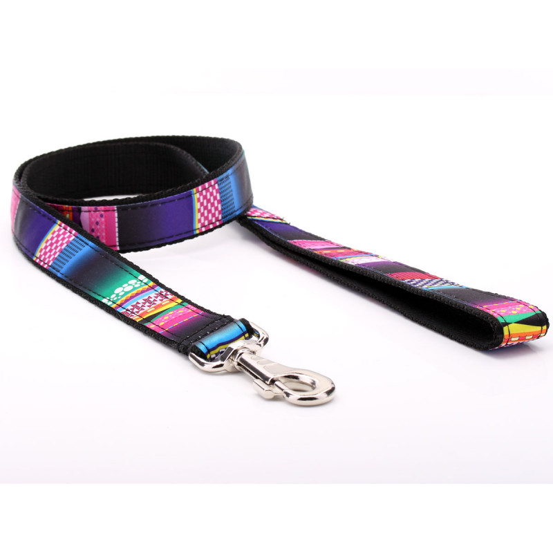 Cette laisse pour chien funky est doublée d'un nylon durable, ce qui la rend super résistante. Elle est disponible en 3 couleurs et 3 largeurs. *La taille XS est un ruban en tissu uniquement, il n'a pas de support en nylon.