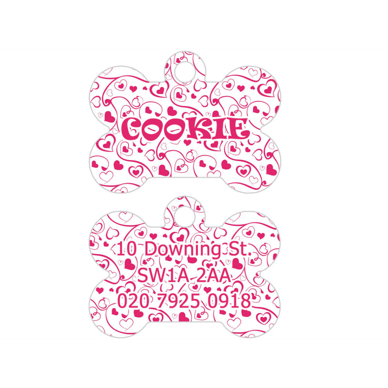 Nos plaques d’identité pour chiens sont extrêmement populaires car elles sont colorées, uniques et peuvent être entièrement personnalisées. L'impression sur aluminium nous permet d'avoir une finition durable qui est très visible. Quelle meilleure façon de protéger votre chien et de lui donner du style avec une plaque d’identité colorée Personalised Dog. Vous pouvez personnaliser chaque côté de la plaque indépendamment. La plupart des clients choisissent de faire imprimer le devant de la plaque avec le nom et le dos personnalisé avec les coordonnées. Nous incluons un porte-clés lourd que vous pouvez utiliser pour l'attacher à votre collier existant. Il est suffisamment solide pour que la plaque ne tombe jamais.