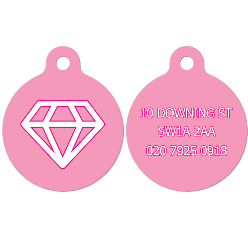 Nos plaques d’identité pour chiens sont extrêmement populaires car elles sont colorées, uniques et peuvent être entièrement personnalisées. L'impression sur aluminium nous permet d'avoir une finition durable qui est très visible. Quelle meilleure façon de protéger votre chien et de lui donner du style avec une plaque d’identité colorée Personalised Dog. Vous pouvez personnaliser chaque côté de la plaque indépendamment. La plupart des clients choisissent de faire imprimer le devant de la plaque avec le nom et le dos personnalisé avec les coordonnées. Nous incluons un porte-clés lourd que vous pouvez utiliser pour l'attacher à votre collier existant. Il est suffisamment solide pour que la plaque ne tombe jamais.