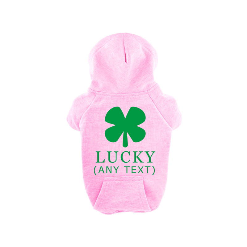 Sweat À Capuche Rose Personnalisé Pour Chien Avec Trèfle À 4 Feuilles