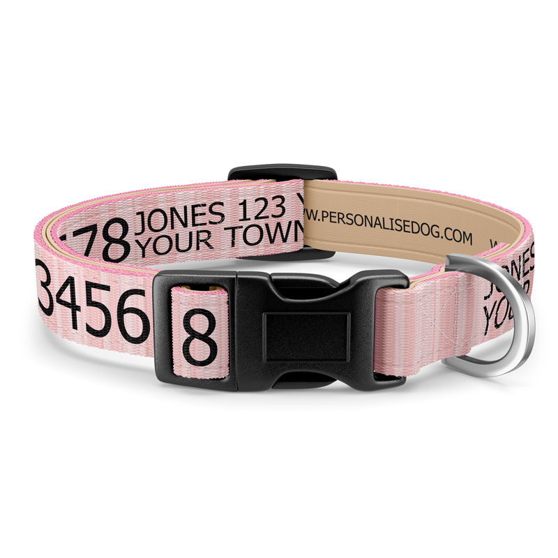 - È possibile personalizzare questo collare con qualsiasi testo che desiderate. legge stabilisce Regno Unito che il collare deve nome e l'indirizzo del proprietario, ma si consiglia vivamente di aggiungere il tuo numero di cellulare pure. Inoltre, è possibile aggiungere altre informazioni importanti come lo stato di salute, il numero di telefono secondario, o il numero di telefono del vostro veterinario.