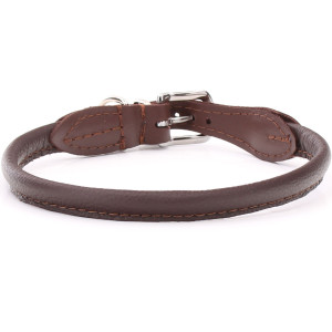 We have a Tibetan Terrier that has a thick long coat. We researched on line for the best type of collar for him and found that round was better than flat. This collar turned out to be perfect because it does not matt his coat. It looks and feels good, has sturdy buckles and rings and is easy to put on.