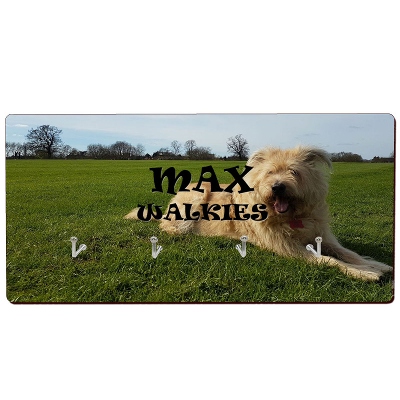 Creare uno spazio sul muro per (o del pacco) attività preferita del tuo migliore amico ... Walkies! È possibile personalizzare questo supporto guinzaglio per cani con il testo che, come: il nome del vostro cane (s), il tuo nome di famiglia, o anche una frase preferita. Ci sono un totale di 4 ganci metallici che si può anche utilizzare per colletti appesi, o chiavi.