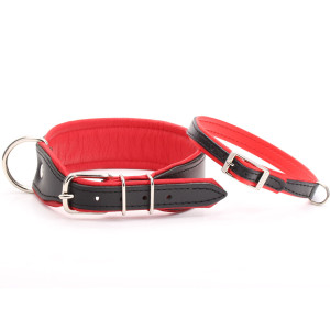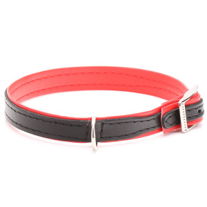 Collare Di Cane In Pelle Nera E Rossa A Mano