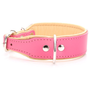 Collare Di Cane In Pelle Rosa E Beige A Mano