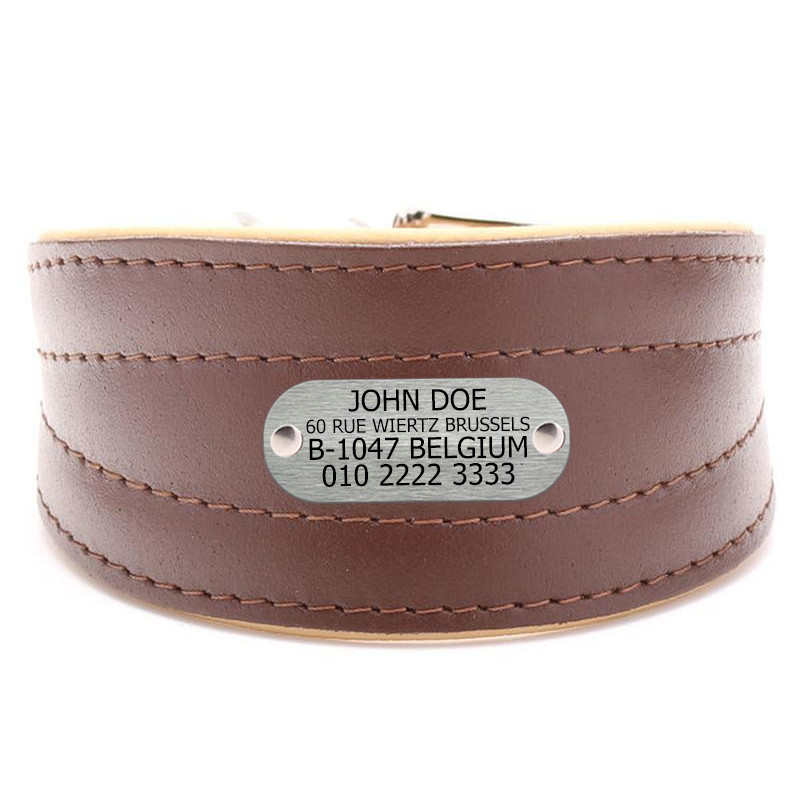 - Abbiamo preso i nostri alta qualità in pelle imbottita collari da caccia e la personalizzazione aggiunto con una lastra di metallo stampato. Il vostro cane apprezzerà il collo imbottito morbido, mentre si preoccupi un po 'meno sul fatto che il tag non cadere mentre insegue volpi attraverso il parco.