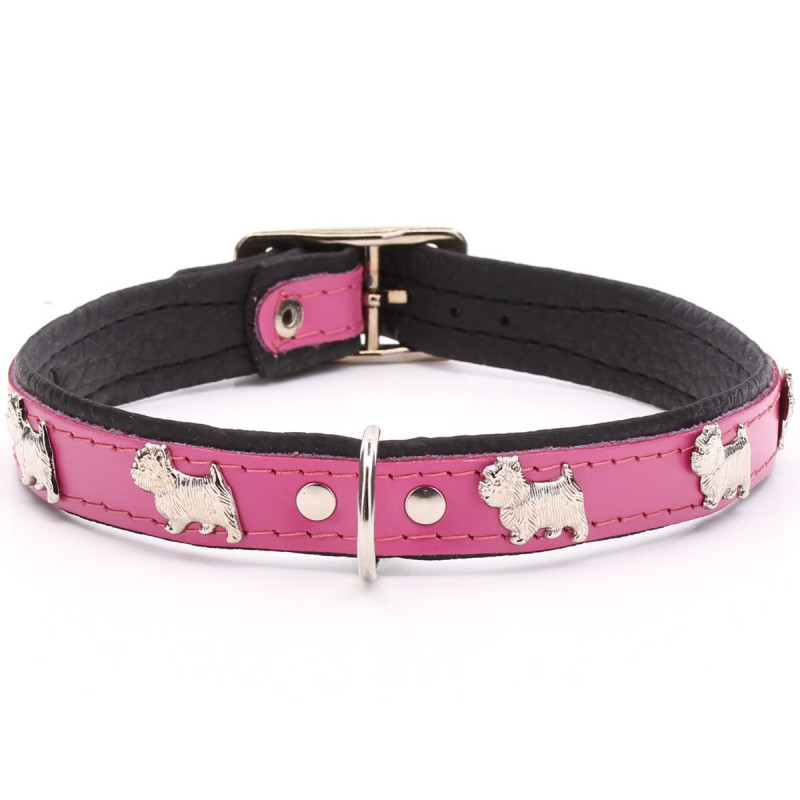 modo Quale migliore per trattare il vostro cane che con questo collare di cuoio imbottito decorato con metallo lucido Westies. E 'disponibile in 6 colori e 2 misure. Assicurati di abbinarlo con un tag di cane personalizzati e la ciotola su misura.