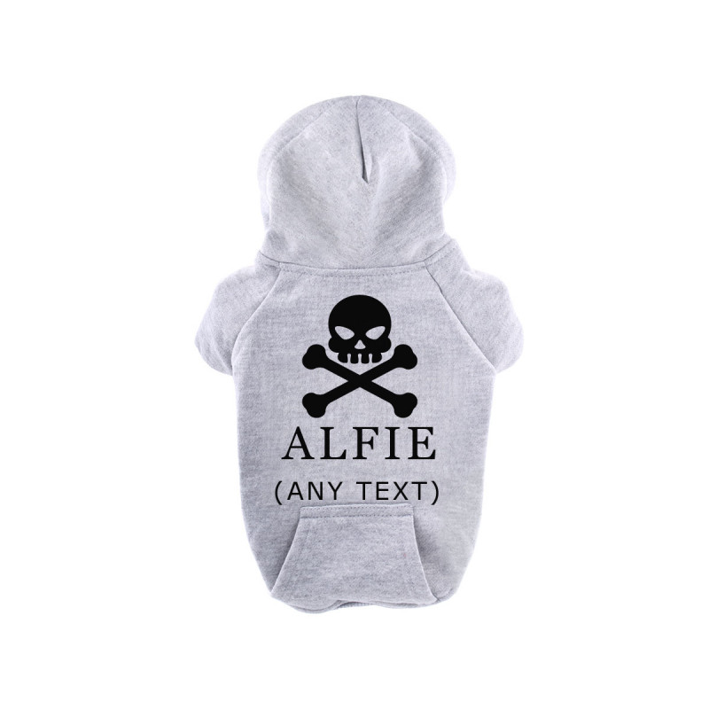 Grigio Personalizzato Felpa Con Cappuccio Cane Con Il Cranio