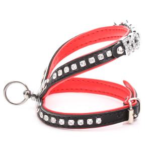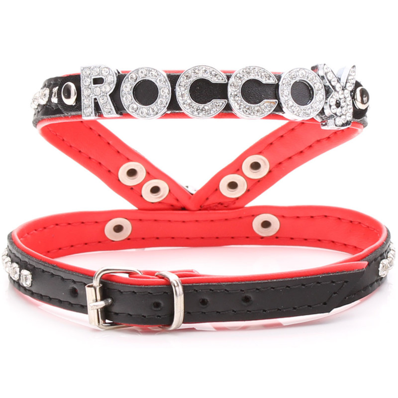 cani di piccola taglia ameranno questo vero cane finimenti di cuoio con morbida imbottitura bambino blu. E 'decorato in cristalli brillanti e un conveniente girevole in metallo. Le crisi filo davanti comodamente intorno al collo, mentre gli regolabile si adatta loop back intorno alla parte anteriore del torace. personalizzazione opzionale è disponibile con i fascini della lettera.