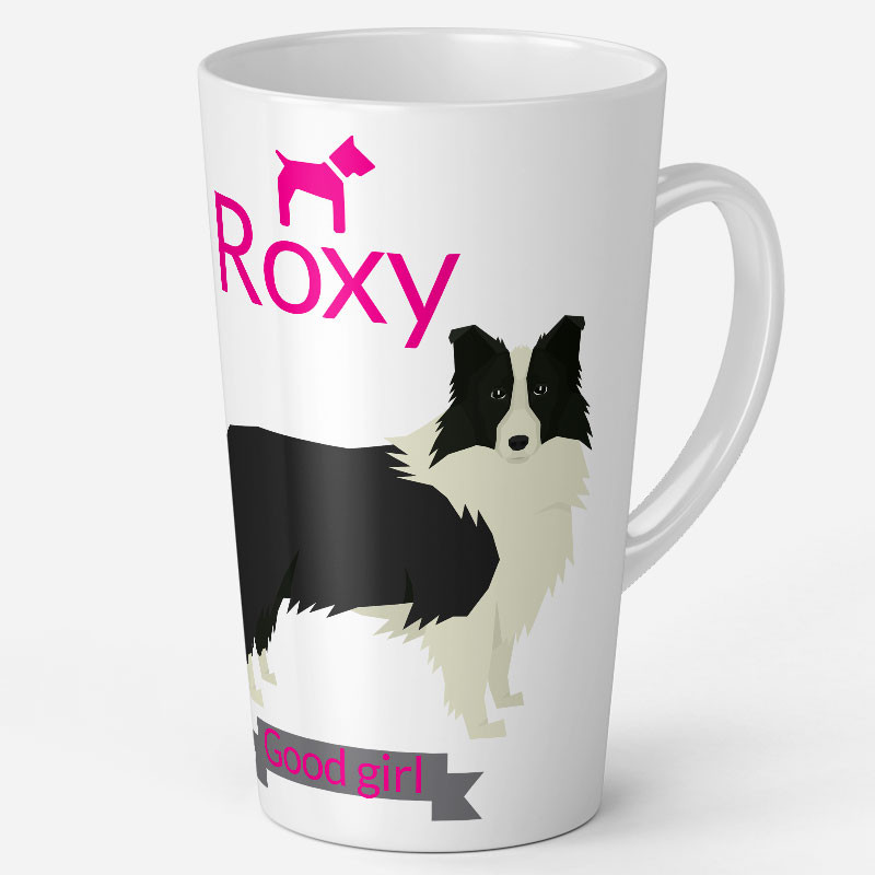 This ceramic mug holds your favorite caffeinated beverage and it is personalized with your dog’s name and a short slogan. We give an option of selecting the font style and text color.