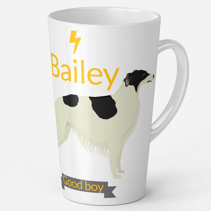 This ceramic mug holds your favorite caffeinated beverage and it is personalized with your dog’s name and a short slogan. We give an option of selecting the font style and text color.