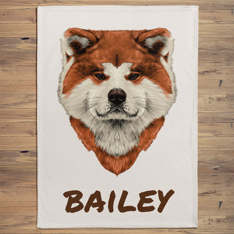 Pătură de lână bej deschis super moale, personalizată cu numele câinelui dvs. în culoarea de imprimare aleasă. Măsoară 140 cm x 95 cm.