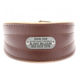 - Ne-am luat de înaltă calitate din piele căptușită gulere noastre hound și a adăugat personalizare cu o placă de metal imprimat. Cainele tau va aprecia gulerul moale căptușit, în timp ce va face griji un pic mai puțin știind că eticheta nu va cădea ca el urmăriri vulpi prin parc.