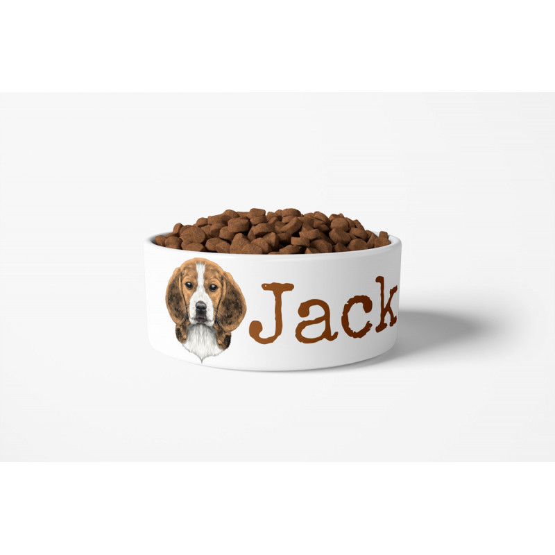 Ta keramična pasja posoda je natisnjena z imenom vašega psa v barvi in slogu pisave po vaši izbiri. Izbirate lahko med dvema velikostma: veliko, ki ima približno 1 liter, ali majhno, ki vsebuje približno 0,5 litra. Posode so primerne za mikrovalovno pečico in pomivalni v pomivalnem stroju. Vendar pa priporočamo ročno pranje, da zagotovite, da bo natis ohranil svojo živahnost še vrsto let. Za več pasem in stilov si oglejte kategorijo pasje sklede.