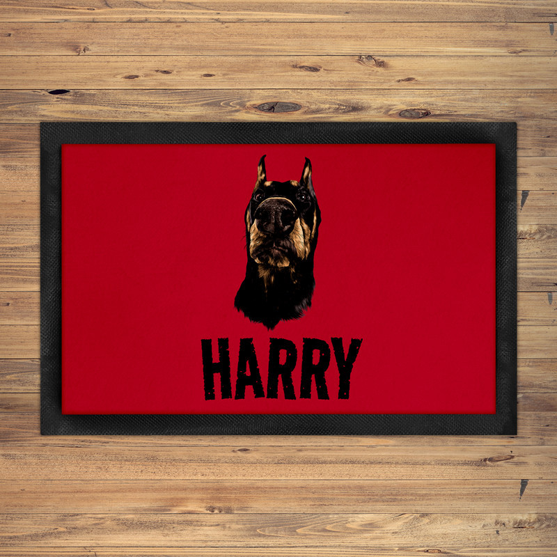 Ta podloga za pasje posode je natisnjena z imenom vašega psa v barvi in slogu pisave po vaši izbiri. Zgornji del podloge je prekrit s trpežno tkanino. Uporabljamo najsodobnejšo tehnologijo za tisk na vlakna tkanine in pustimo trajno personalizacijo. Debela gumijasta podlaga bo preprečila drsenje podloge in, kar je še pomembneje, zaščitila vaša tla pred nadležnimi sledovi, ki jih posode ponavadi pustijo. Izbirate lahko med dvema velikostma: veliko (60x40cm) ali majhno (45x25cm). Če ugotovite, da morate preprogo očistiti, jo preprosto operite v umivalniku in obesite, da se posuši.