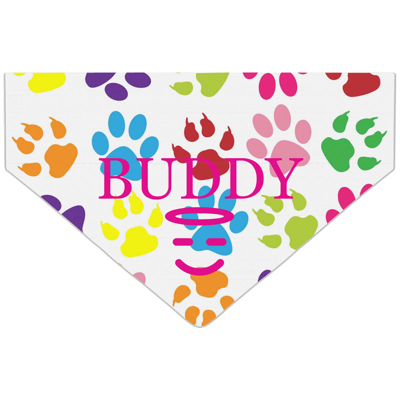 - Det finns ingen gräns för hur mycket text som vi kan lägga till din bandana och vi kan också lägga till specialtecken som en tass, krona, ben, hjärta, skalle, fotboll eller stjärna. Även om vi kommer att göra vårt bästa för att skriva ut långa personalisations rekommenderar vi att hålla det kort, så att vi kan använda en rimlig teckenstorlek.